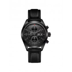 Quadrante nero con simbolo ali, contatori cronografici a ore 6 e a ore 12 e indicazione giorno e data a ore 3